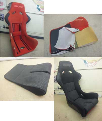 ![]() | RECARO TS-G アルカンタラ張替え レカロのフルバケシートTS-Gの張替え依頼をいただきました。 シェルをオフホワイトで塗装されていて、黒色アルカンタラを使用して、オフホワイト色のダブルステッチ、センタークッション部はパンチング・アルカンタラで仕上げています。 |