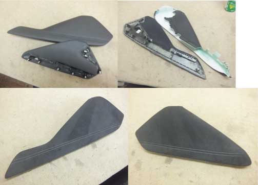 ![]() | ホンダ エリシオン ドア内張り スエード×レザー張替え エリシオンのドア内張りのショルダー部とアームレスト部を黒レザーで、トリム部をパープルのスエード生地での張替え依頼です。 各部は溶着されているのですが、内張り自体が大きなものになるので、その数が1枚10か所以上あり、思っていた以上に分解、組上げ作業に時間が掛かりましたが、何とか納品できました。 |