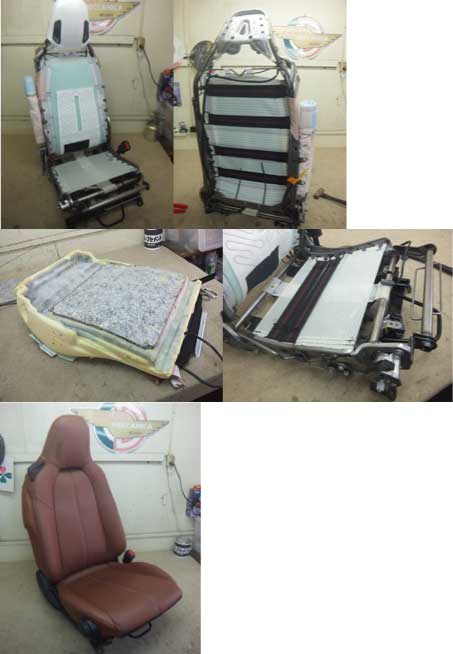 ![]() | アルファロメオ SZ シートクッション修理&フロアレザー貼り クッションゴムが伸びきってお尻が落ち込んでしまうので、交換依頼をいただきました。 テンションが掛かるようになり、シッカリするようになりました。 フロアカーペットには純正のようにレザーを貼りこみしました。 |